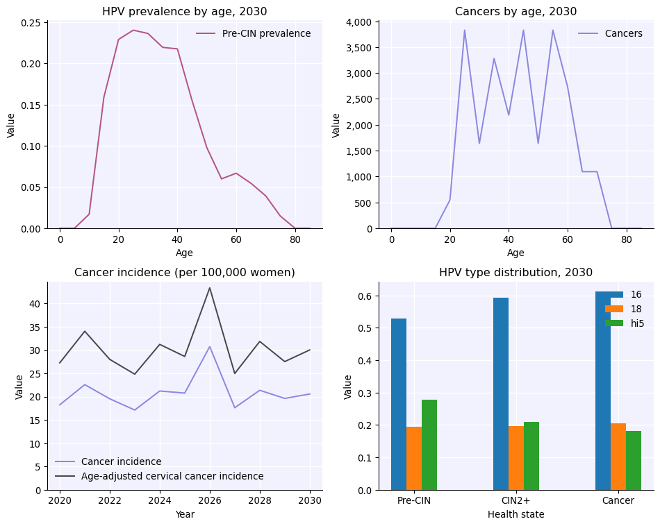 sim = hpv.Sim(pars, end=2050) # Use parameters defined above, except set the end data to 2050sim.run()